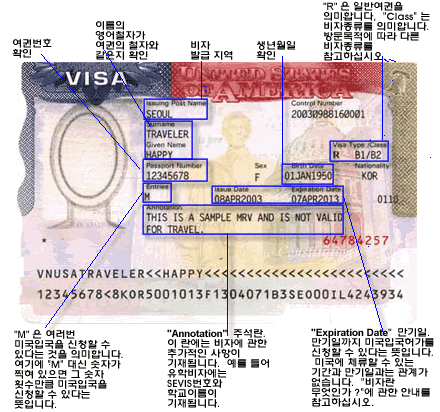 비자에는 입국의 종류와 목적, 체류기간 등이 나타나있으며, 여권의 바자란에 스탬프나 스티커를 붙여 발급하게 됩니다.
